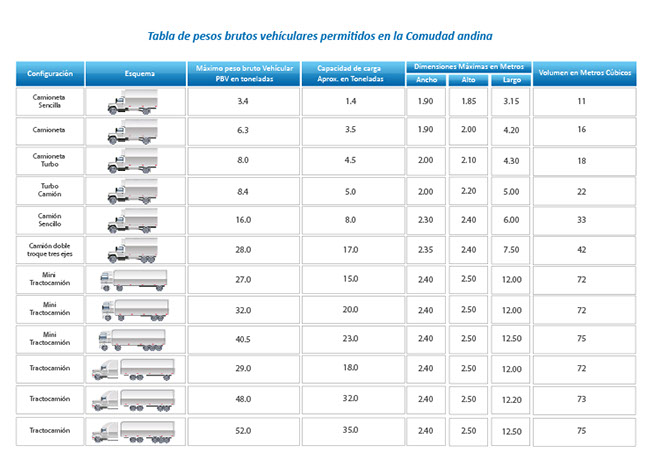 Consulte la capacidad vehicular permitida por la comunidad andina