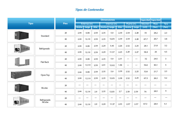 Consulte los tipos de contenedor existentes para el manejo de su carga